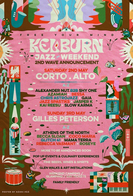 Established in 2009, the festival is renowned for featuring a high quality and diverse range of musical styles across 12 bespoke stages set across spectacular and ancient glen and gardens - covering everything from electronica, house, techno, d'n'b, disco to folk, jazz, funk, hip-hop and world music. The music sits alongside a feast of creative delights and fun attractions embedded around the site, such as the incredible selection of contemporary art installations in the 'Neverending Glen', theatre and cabaret, pop-up parties, glen walks, waterfall plunge pools, poetry, workshops, and downright surreal happenings. Kelburn Garden Party is family-friendly and well-loved by all kids and adults alike. It's a cultural safari for the mind, body and the soul!